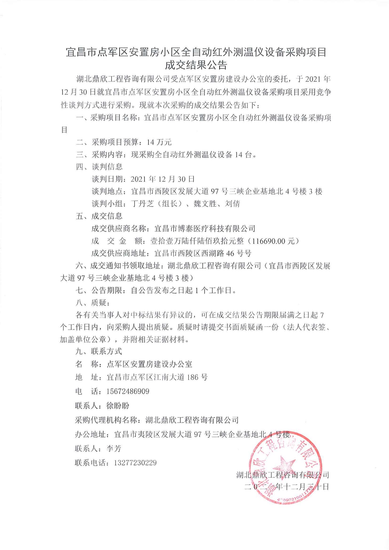 宜昌市點(diǎn)軍區(qū)安置房小區(qū)全自動(dòng)紅外測(cè)溫儀設(shè)備采購(gòu)項(xiàng)目成交公告