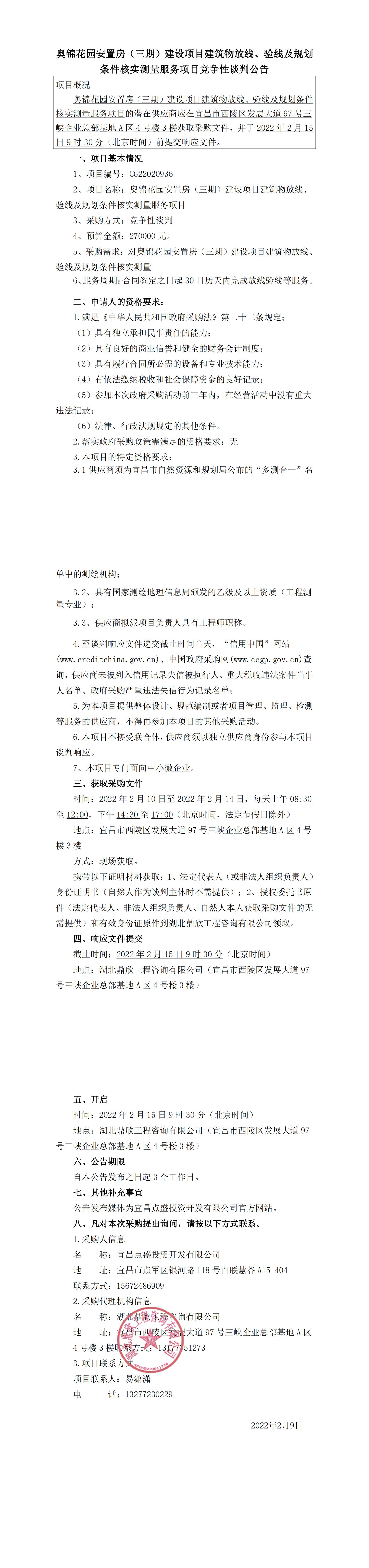 奧錦花園安置房(三期)建設(shè)項目建筑物放線、驗線及規(guī)劃條件核實測量服務(wù)項目競爭性談判公告