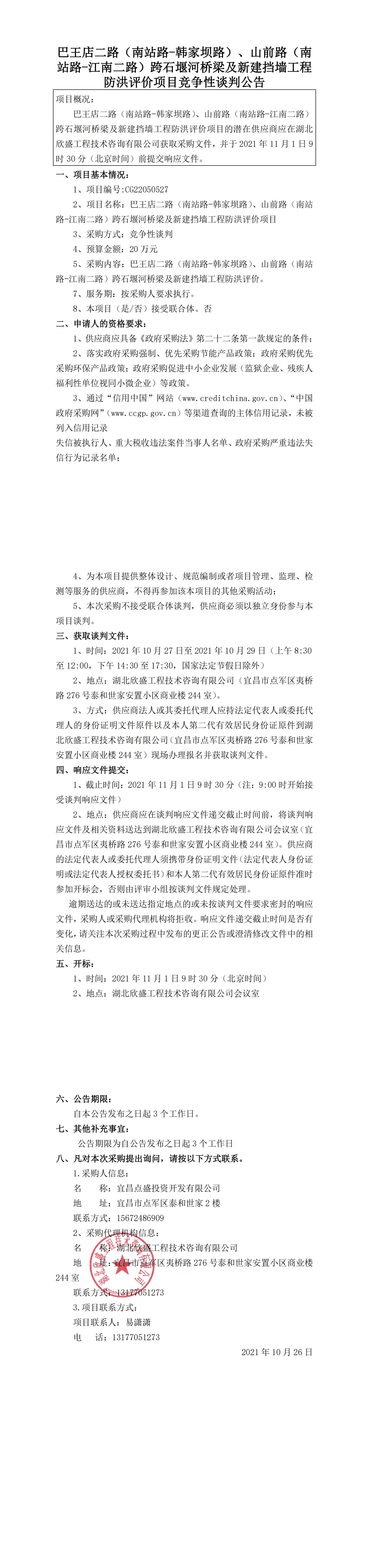巴王店二路(南站路-韓家壩路)、山前路(南站路-江南二路)跨石堰河橋梁及新建擋墻工程防洪評(píng)價(jià)項(xiàng)目談判公告