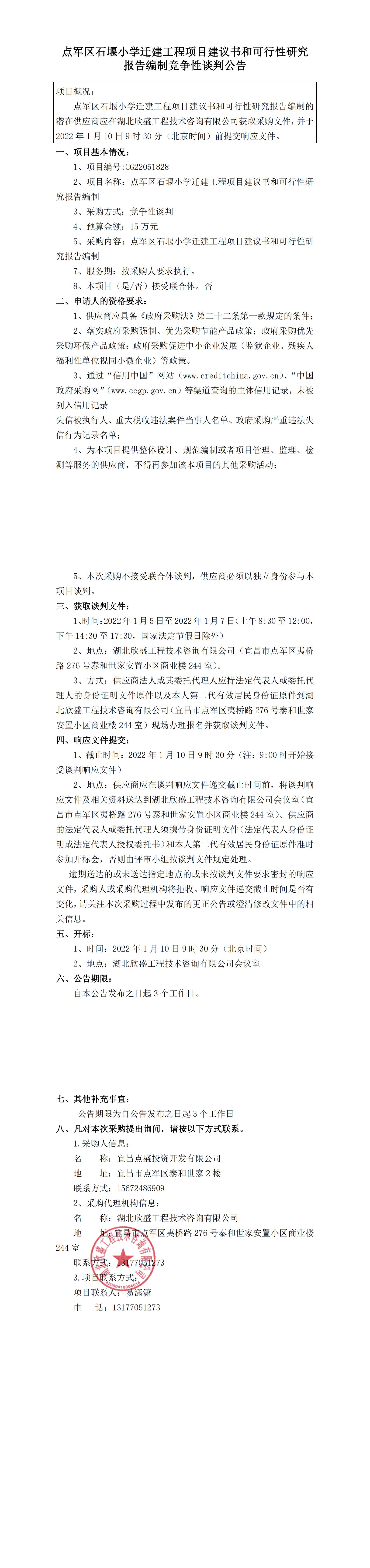 點(diǎn)軍區(qū)石堰小學(xué)遷建工程項(xiàng)目建議書和可行性研究報(bào)告編制競(jìng)爭(zhēng)性談判公告