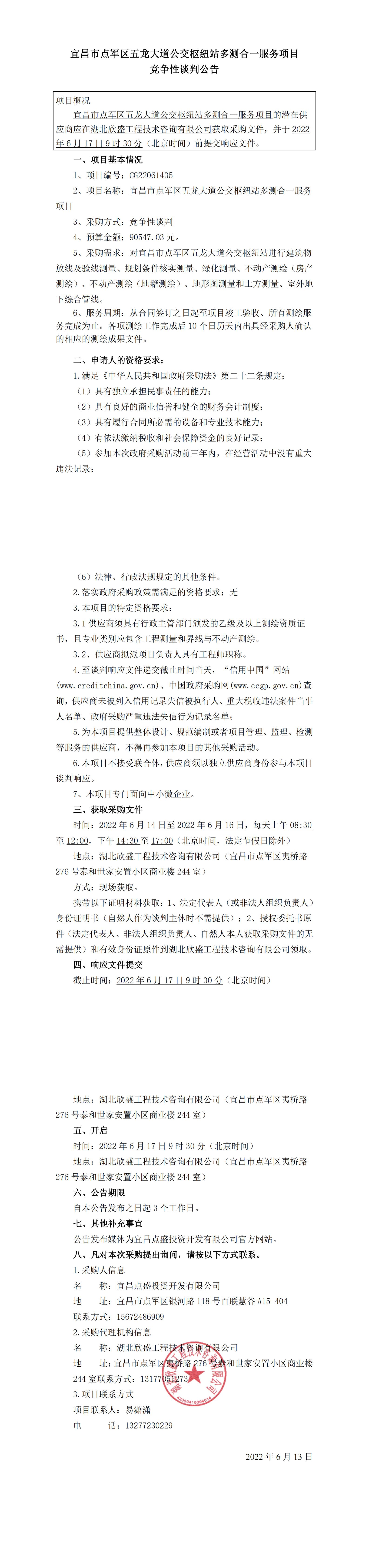 宜昌市點(diǎn)軍區(qū)五龍大道公交樞紐站多測(cè)合一服務(wù)項(xiàng)目競(jìng)爭(zhēng)性談判公告