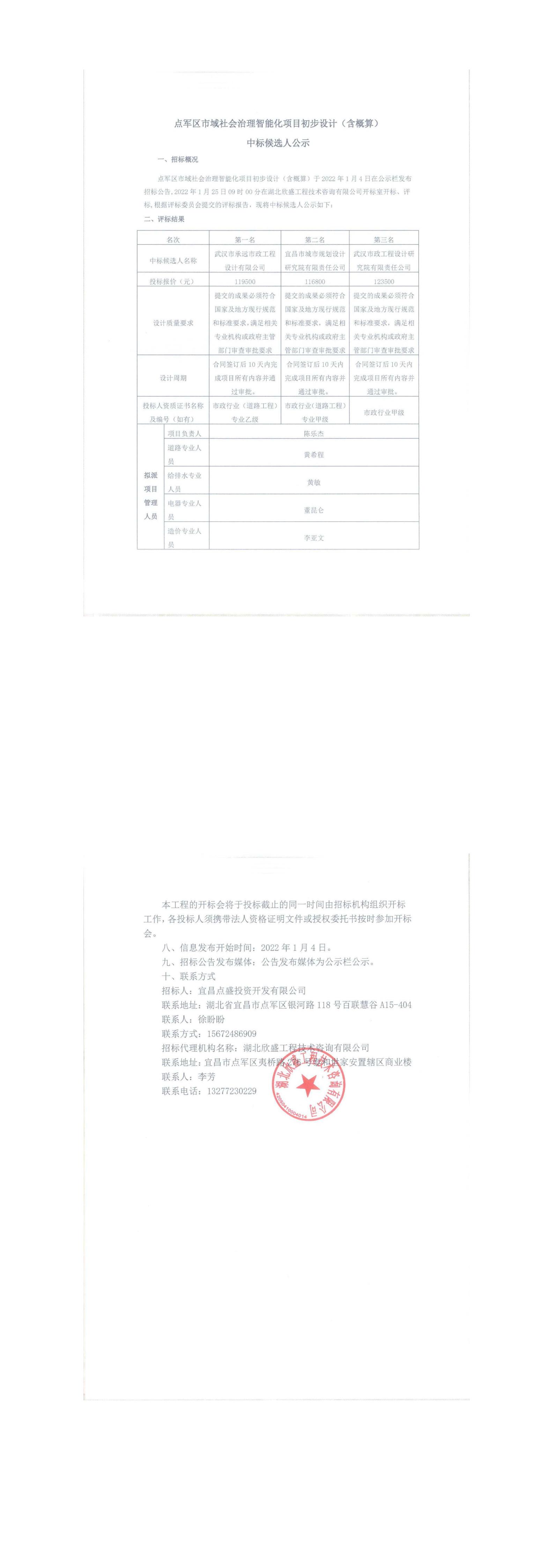 點軍區(qū)市域社會治理智能化項目初步設(shè)計(含概算)中標候選人公示