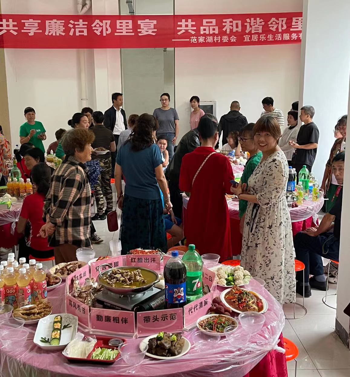 【湖景名苑百人宴】6月18 日上午,范家湖村黨支聯(lián)合轄區(qū)單位、居民、下沉黨員聯(lián)合開展以“共享廉潔鄰里宴,共品和諧鄰里情”為主題的端午節(jié)活動,讓大家感受到了獨具一格的“清廉美食魅力”。?