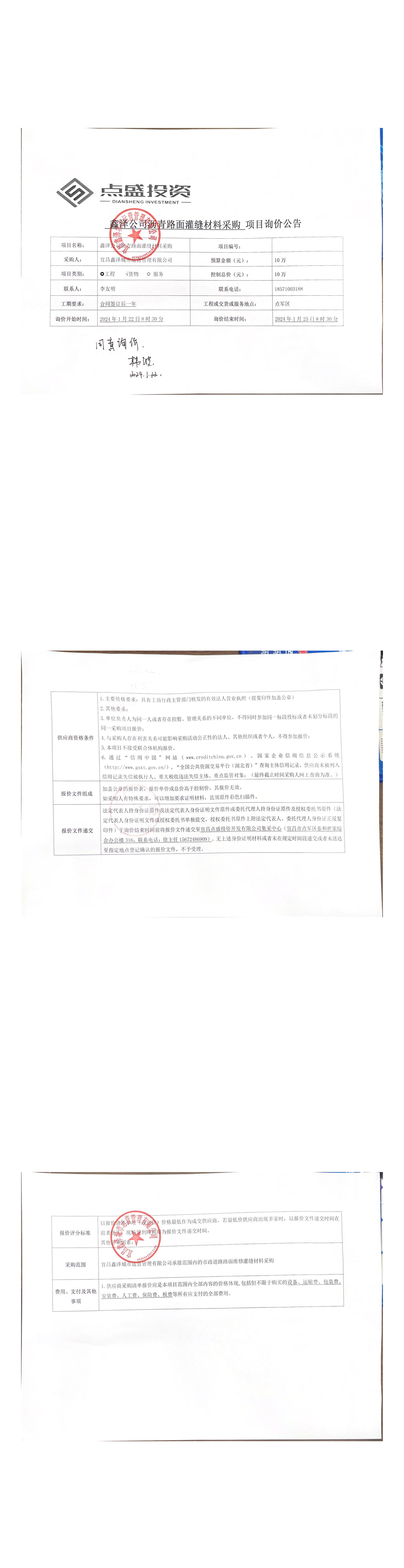 鑫澤公司瀝青路面灌縫材料詢價公告
