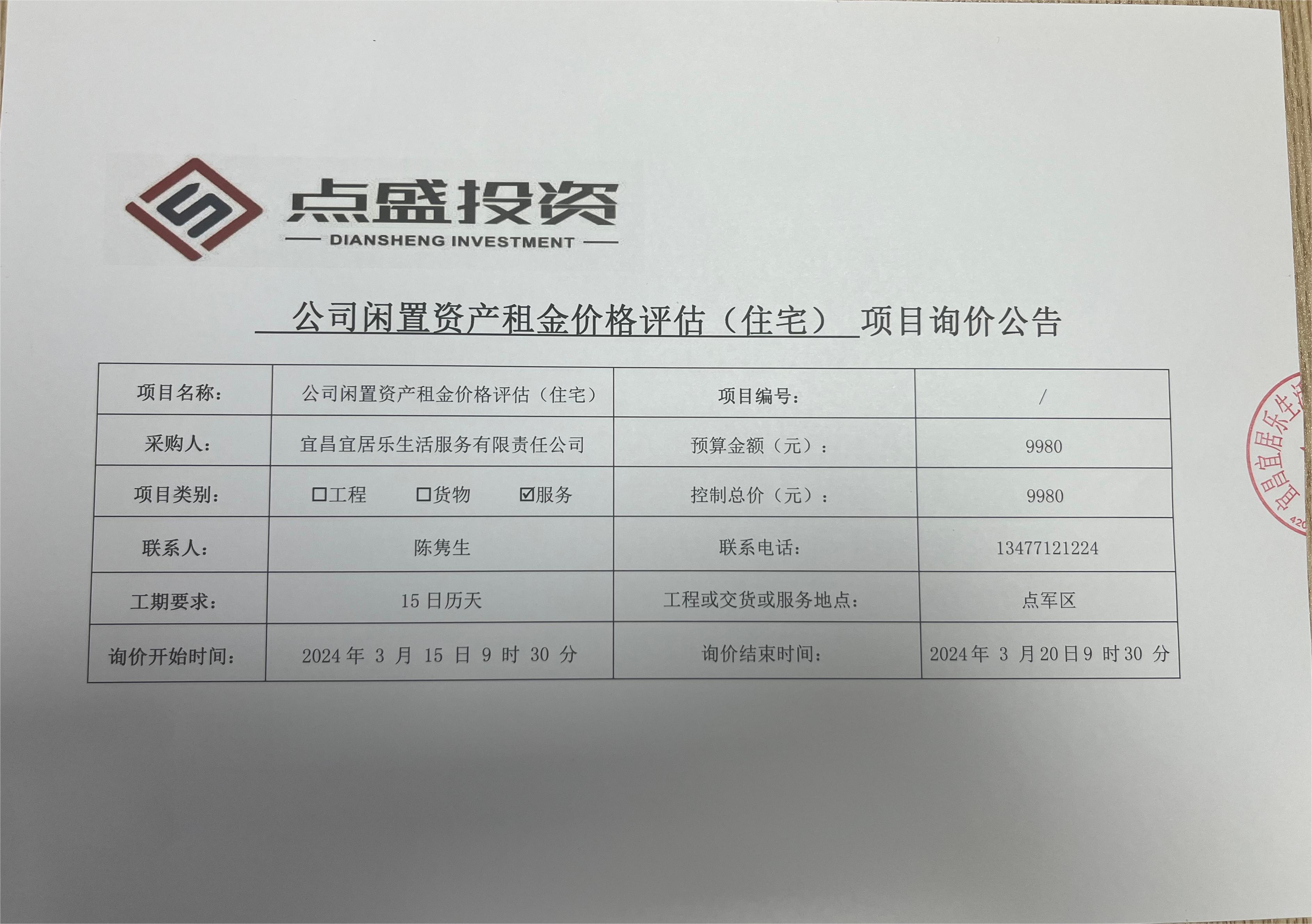 公司閑置資產(chǎn)租金價格評估(住宅)?項目詢價公告