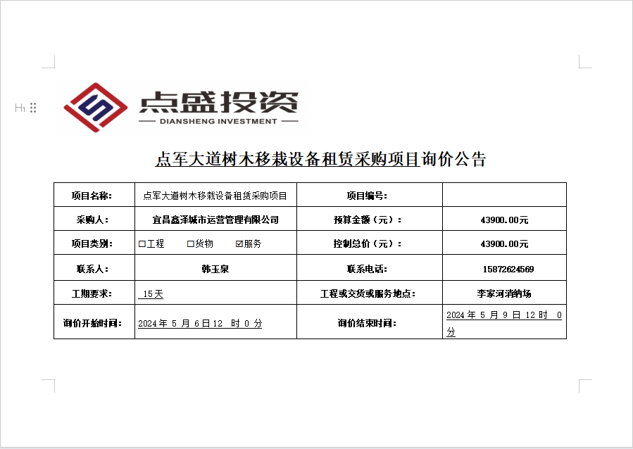 點(diǎn)軍大道樹木移栽設(shè)備租賃采購項(xiàng)目詢價公告