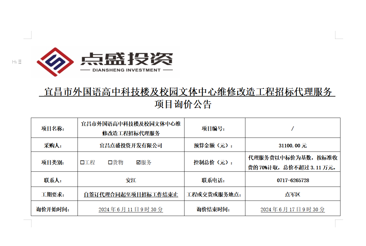 宜昌市外國語高中科技樓及校園文體中心維修改造工程招標(biāo)代理詢價公告