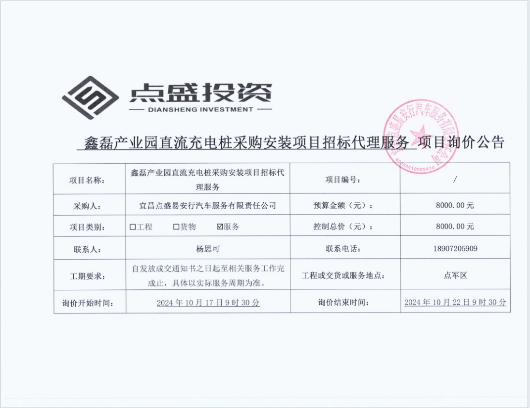 鑫磊產(chǎn)業(yè)園直流充電樁采購安裝項目招標(biāo)代理服務(wù)詢價公告