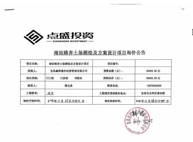 南站路棄土場測繪及方案設計項目詢價公告