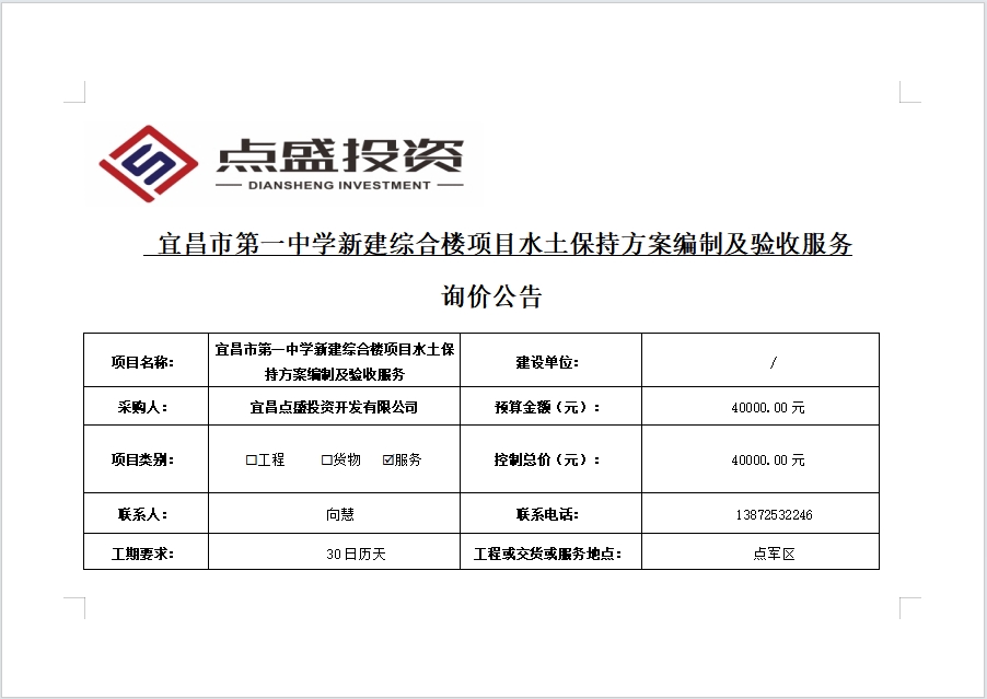 宜昌市第一中學新建綜合樓項目水土保持方案編制及驗收服務詢價公告